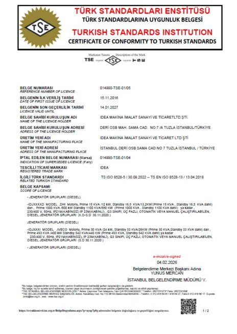 IDEA Jeneratör ve Makina İmalat San. ve Tic. A.S. 2025 | All Rights Reserved