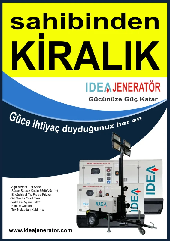 Idea Kiralık Jeneratörleri sektörde en geniş donanıma sahip ürünlerdir. Ağır hizmet tipi şase , 24 saat kapasiteli yakıt tankı , süper ...